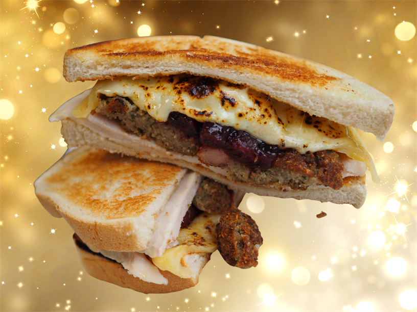 with Turkey, stuffing, cranbbery, cheese, pigs in blankets and tater tots